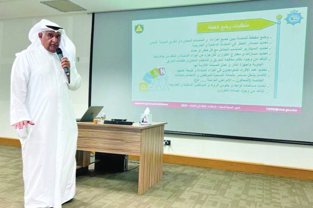 وتطرق الرشيدي في المحاضرة إلى تدابير الحماية المدنية وطريقة الإخلاء في المنشآت والإجراءات والاشتراطات الوقائية التي يجب اتباعها لتحقيق هدف حماية ووقاية الأفراد المدنيين في المنشآت من المخاطر والكوارث المتوقعة بأنواعها «طبيعية، من صنع الإنسان، الحروب»، وتقليل الخسائر والأرواح والممتلكات إلى أدنى مستوى ممكن.