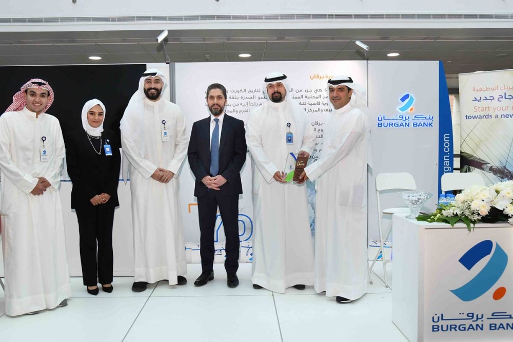 وشهد المعرض إقبالاً كبيراً، إلى جانب حضور ووجود ممثلي إدارة الموارد البشرية في بنك برقان، للإجابة عن كل أسئلة واستفسارات الطلبة المهتمين والباحثين عن فرص عمل في القطاع المصرفي.