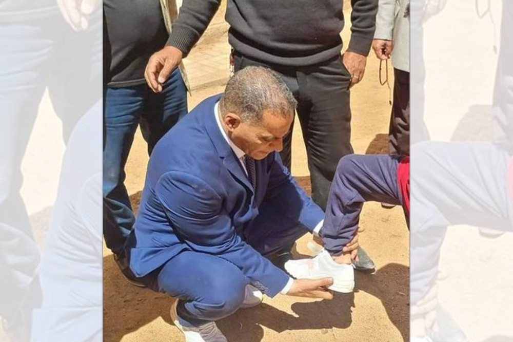 وكيل وزارة يُلبس تلميذاً حذاءً اشتراه له