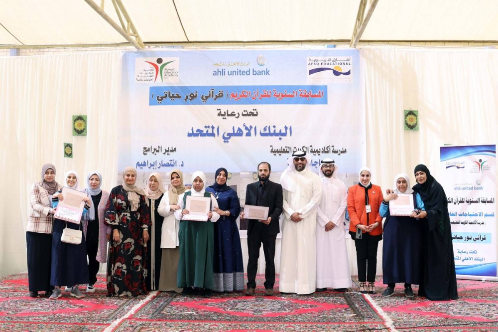 اختتم البنك الأهلي المتحد بنجاح رعايته مسابقة «قرآني نور حياتي»، التي نظمتها مدرسة أكاديمية الكويت التعليمية للأطفال في قسم الاحتياجات الخاصة. وتُعد هذه المسابقة جزءاً من جهود البنك لخدمة كل فئات المجتمع، ومن بينهم ذوو الاحتياجات الخاصة، الذين يحتاجون إلى تضافر كل الجهود لتشجيعهم ودعمهم.
