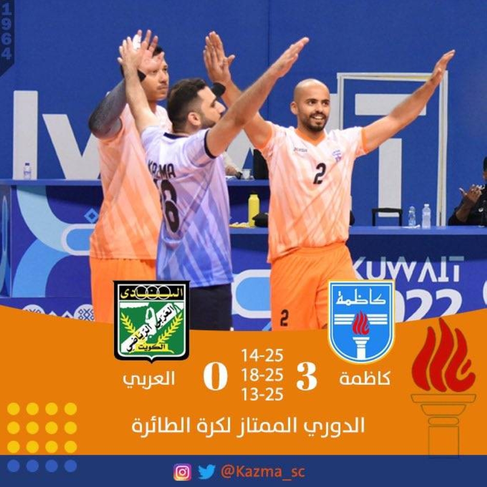 استعاد فريق كاظمة لكرة الطائرة نغمة الفوز في المربع الذهبي للدوري الممتاز لكرة الطائرة بفوزه على منافسة العربي بنتيجة ثلاثة أشواط مقابل لا شيء في المباراة التي جمعت الفريقين اليوم الخميس على صالة الاتحاد بمجمع الشيخ سعد العبدالله الرياضي في ختام الجولة الثانية، وجاءت نتائج الأشواط كالتالي "25-14,25-18,25-13”.
