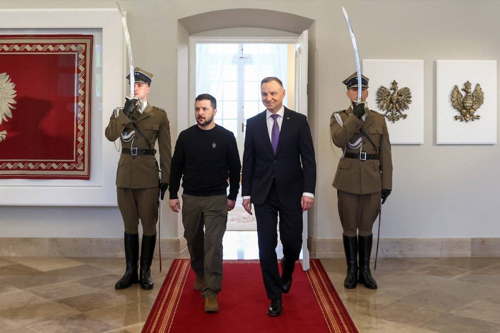 أجرى الرئيس الأوكراني فولوديمير زيلينسكي، اليوم، زيارة إلى بولندا بعد أن عبر الحدود قادماً من أوكرانيا حيث أجرى محادثات لتعزيز التحالف بين البلدين مع نظيره البولندي أندريه دودا ورئيس الوزراء البولندي، ماتيوش مورافيتسكي.