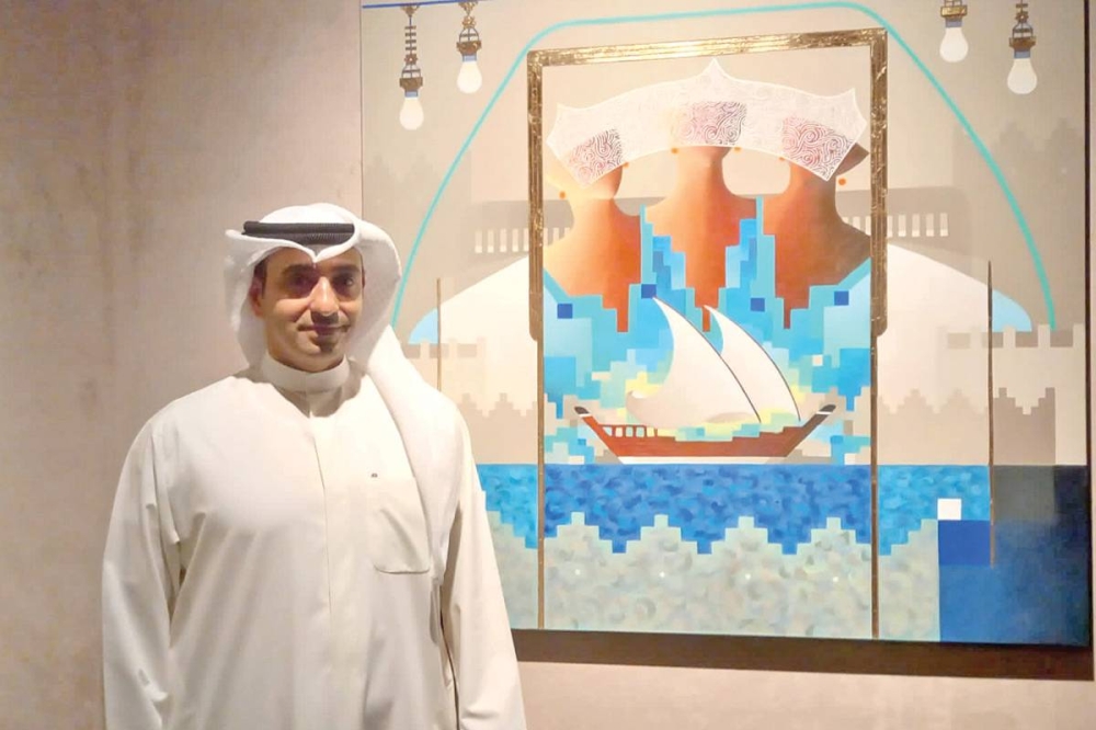 من جانبه، قال الفنان زيد العبيد إنه شارك بلوحة عن التراث الكويتي بعنوان «حفاظ»، حيث «يبين العمل أهمية الحفاظ على تراثنا»، لافتاً إلى أن الألوان التي استخدمها ترمز إلى البيئتين البحرية والبرية بأسلوب «المكس ميديا».