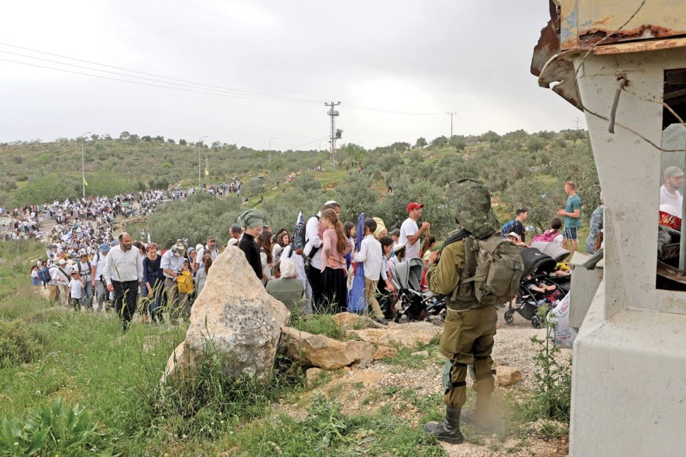 وفي خضم التوتر، أصدر الجيش الإسرائيلي ترخيصاً لتنظيم مسيرة للمستوطنين انطلقت من حاجز زعترة (جنوب نابلس)، باتجاه بؤرة «أفيتار» الاستيطانية المقامة على جبل صبيح في بلدة بيتا، التي جرى إخلاؤها، بعد أشهر من احتجاجات الفلسطينيين. وتقدم المسيرة 7 وزراء وأكثر من 20 عضواً بـ «الكنيست»، بينهم وزير المالية يتسلئيل سموتريتش، ووزير الأمن القومي، إيتمار بن غفير. وقدرت مصادر مشاركة 25 ألف مستوطن في المسيرة.