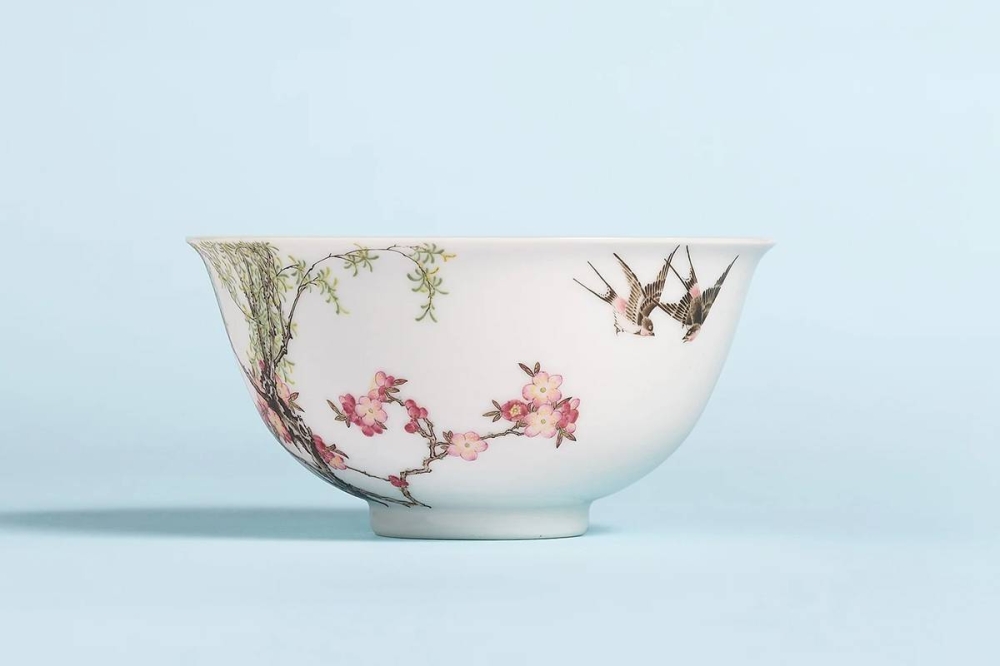 وهذه التحفة ضمن مجموعة نادرة من قطع الخزف التي صنعت في بكين خلال القرن الـ 18 أثناء عهد الإمبراطور يونغ تشنغ، الذي حكم الصين من عام 1722 إلى 1735. ويصوِّر الوعاء، الذي بلغت قيمته 25.3 مليون دولار في المزاد، طائرين من السنونو وشجرة مشمش مزهرة وشجرة صفصاف، ويحتوي على مقتطفات من قصيدة يعتقد أن الإمبراطور وانلي، من سلالة مينغ التي حكمت الصين قبل تشنغ، قد أمر بها.