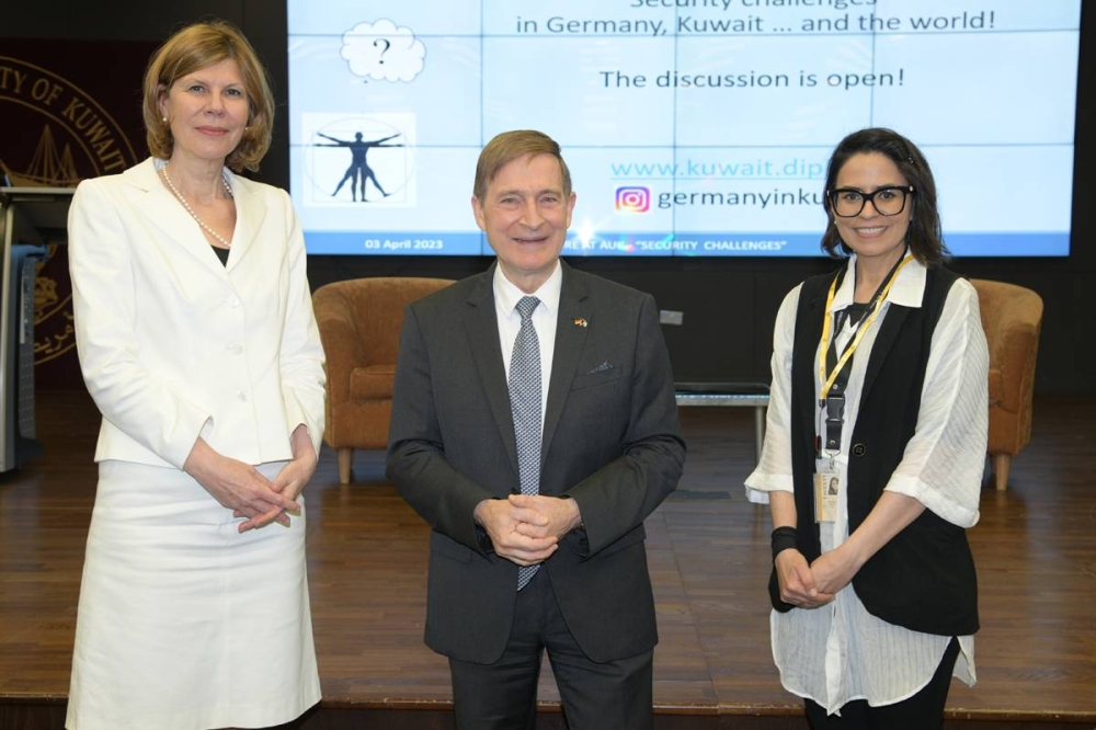 | أعلنت الجامعة الأميركية في الكويت استضافة قسم العلاقات الدولية بكلية الآداب والعلوم بالجامعة ندوة لسفير ألمانيا الاتحادية هانس ريبنيتس، تطرّق فيها عن قضايا الأمن التي تواجه الدول في الحرم الجامعي، بحضور الطلبة وأعضاء هيئة التدريس. وقال ريبنيتس، إن التحديات المتعلقة بالأمن الإنساني قد تكون على المستوى الشخصي أو الأسري، أو على مستوى الفرد في المؤسسة أو مجموعة ما، موضحاً أن مفهوم الأمن الإنساني قد تغيّر على مدار التاريخ بين الحرب الباردة وفترة التسعينيات والوقت الحالي، الذي أصبح فيه المفهوم أكثر تعقيداً. ولفت إلى أن تعريف الأمن الإنساني للمواطنين في دولة ما يضم عدداً من العوامل منها السياسية والعسكرية والاقتصادية والاجتماعية والتقنية والقانونية. وبأخذ ألمانيا ومنطقة الخليج كأمثلة، خلُص السفير إلى أن التصورات الأمنية وتخفيفها قد لا تتغير عبر الحدود فحسب، بل تعتمد على كيفية تحويل التصورات الفردية سياسيا إلى سياسات لها علاقة بالأمن القومي ككل. وأكد أهمية دور الإعلام في تسليط الضوء على القضايا المتعلقة بالأمن الإنساني في مختلف الدول، وتعريف المواطنين بأهمية التصدي لهذه التحديات ومعرفة ماهيتها. واختتمت الندوة بنقاش مفتوح مع الطلبة الذين أكدوا استفادتهم بالندوة والمفاهيم السياسية المذكورة. |