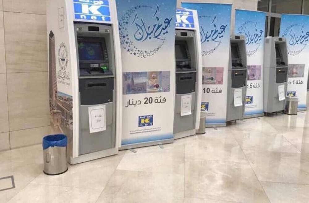 أعلن «المركزي» توفير أجهزة للسحب الآلي في عدد من المجمعات التجارية خلال فترة العيد تتضمن أوراقاً نقدية جديدة من فئات الدينار الكويتي نظراً لازدياد الطلب من المواطنين على تلك الفئات لتوزيع العيادي.
