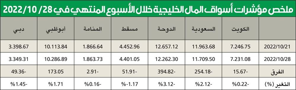 تراجعات متفاوتة لمعظم المؤشرات ونمو «أبوظبي» 1.7% تقرير أسواق المال الخليجية الأسبوعي