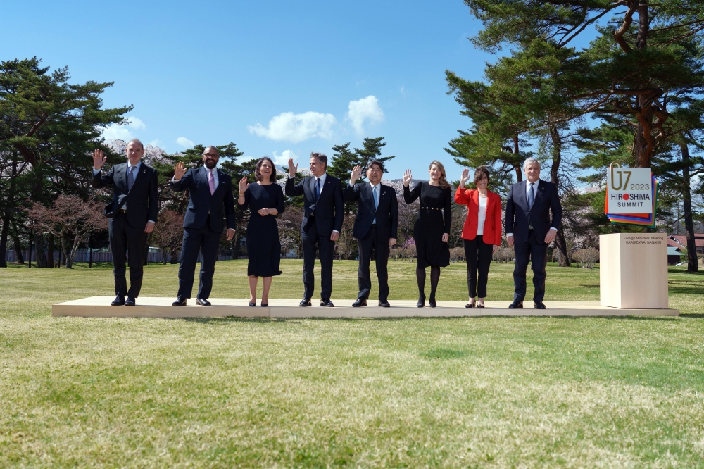 قبيل انعقاد قمة مجموعة الدول الصناعية السبع الكبرى (G7) في هيروشيما باليابان في مايو المقبل، اتفق وزراء خارجية دول المجموعة بعد جلسة أولى من المحادثات التي تختتم اليوم على «مواصلة العمل والتعاون معاً لمعالجة القضايا في الشرق الأوسط بما في ذلك السلام في المنطقة»، كما حذروا من أي محاولة لتغيير النظام الدولي بالقوة في ضوء الحرب الروسية في أوكرانيا وتزايد النفوذ الصيني.
