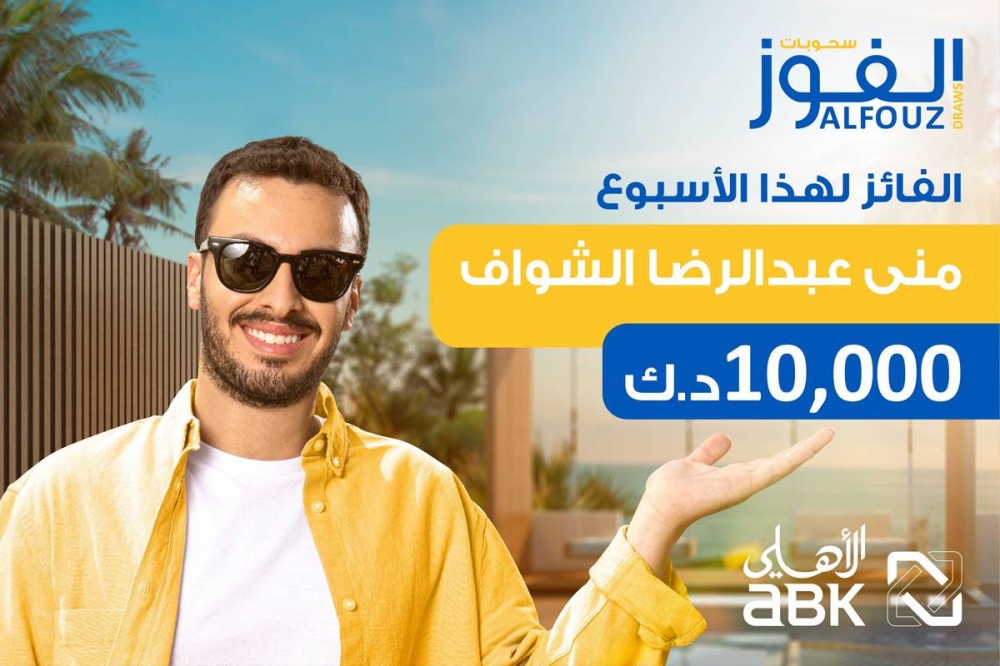 أعلن البنك الأهلي الكويتي فوز منى عبدالرضا الشواف في السحب الأسبوعي لحساب «الفوز» للجوائز، بجائزة نقدية قدرها 10000 دينار، والذي أقيم تحت إشراف وزارة التجارة والصناعة، وتم الإعلان عن اسم الفائزة أمس .