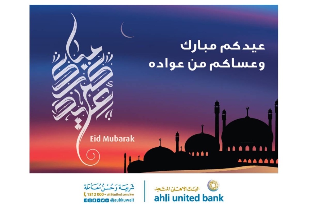 بمناسبة حلول عيد الفطر المبارك، يتقدم البنك الأهلي المتحد إلى سمو أمير البلاد الشيخ نواف الأحمد، وسمو ولي عهده الأمين الشيخ مشعل الأحمد، وإلى الكويت، حكومة وشعبا، والمقيمين فيها، بأطيب التهاني والتبريكات داعين الله - عز وجل - أن يعيده على الأمة الإسلامية باليمن والبركات.