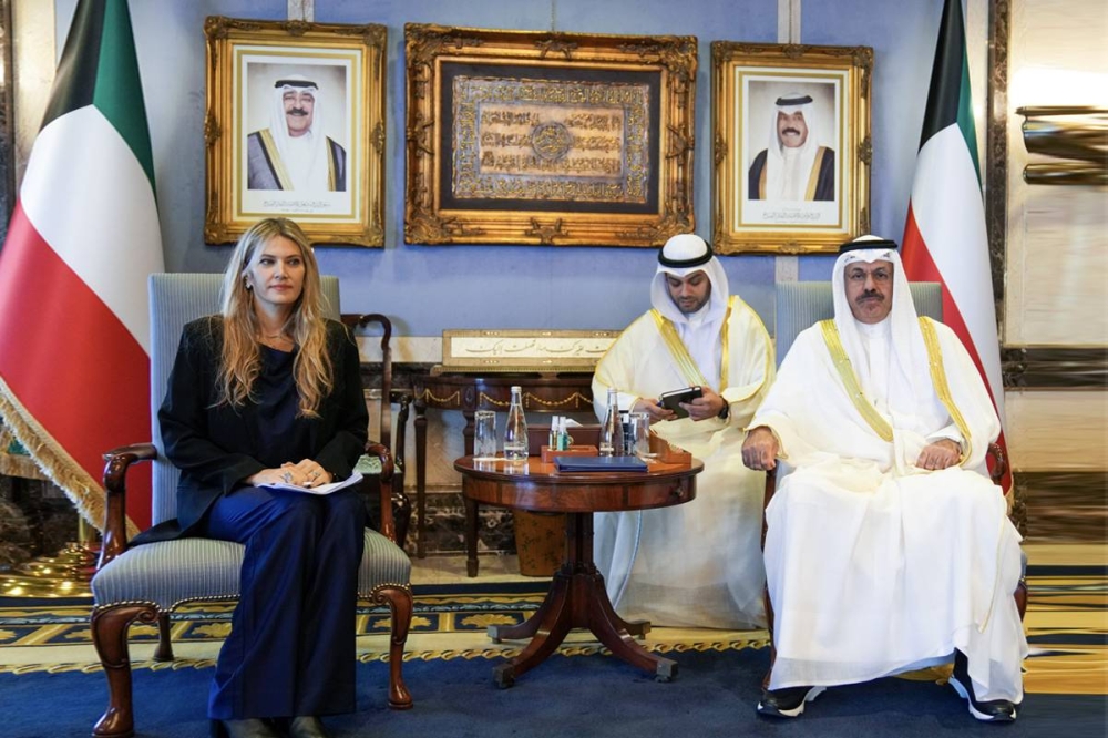 استقبل رئيس مجلس الوزراء سمو الشيخ أحمد نواف الأحمد، في قصر السيف أمس، نائبة رئيس البرلمان الأوروبي ايفا كايلي، والوفد المرافق لها، وذلك بمناسبة زيارتها للبلاد.