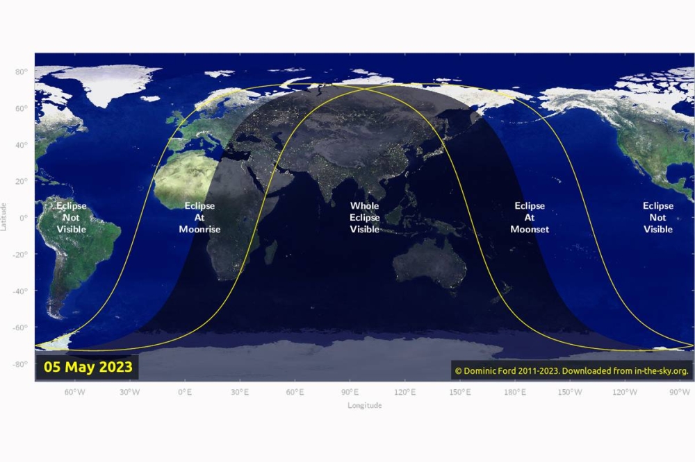 وأضاف المركز أن خسوف القمر الكلي سيشاهد في بعض القارات والمناطق حول العالم وسيتمكن الراصدون من رؤيته بالعين المجردة لاسيما أن القمر سيختفي في معظمه تقريباً في ظل الأرض وحافة قرصه الشمالي ستكون مرئية بالعين المجردة في حال كون الطقس صافياً.