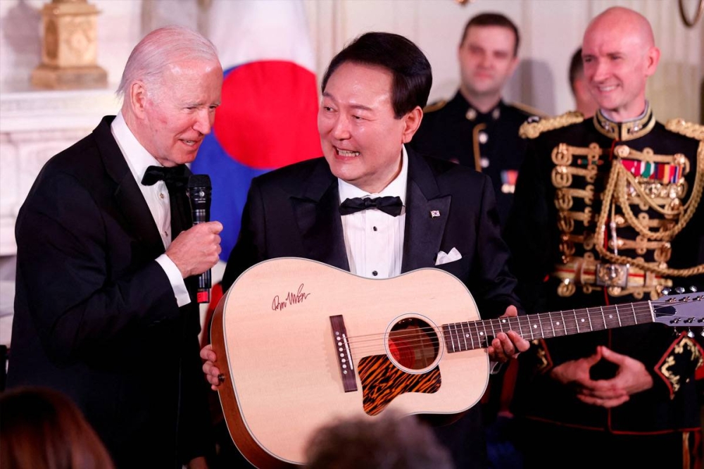 وتعرض بايدن لموقف محرج خلال مؤتمر صحافي مع نظيره الكوري الجنوبي يون سوك في واشنطن، حيث أظهر بايدن عن طريق المصادفة ورقة التقطتها عدسة الكاميرا، تظهر أسماء الصحافيين الذين سيوجهون الأسئلة، وفوق مجموعة الأسئلة ظهرت صورة صحافية من أصول هندية عاملة في «لوس أنجلوس تايمز»، تدعى كورتني سوبرامانيان، حيث كتب اسم عائلتها بشكل واضح تجنبا لوقوع بايدن في الحرج.
