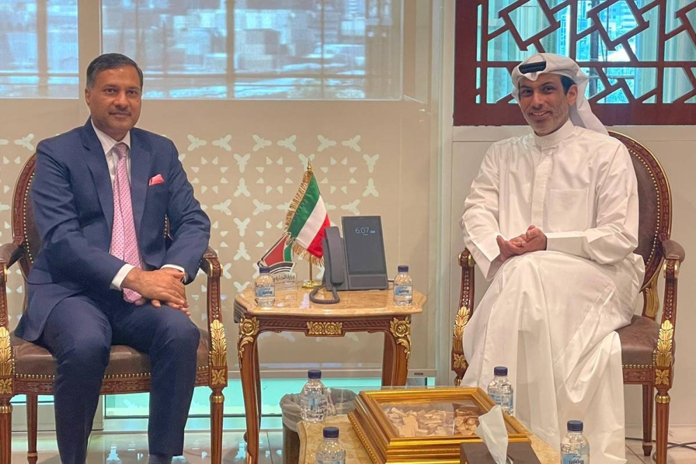 استقبل وزير التجارة والصناعة محمد العيبان في مكتبه، اليوم، السفير الهندي لدى البلاد أدارش سويكا.