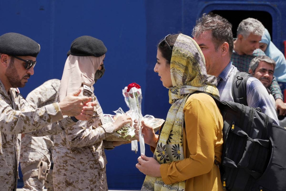 ووصلت إلى قاعدة الملك فيصل البحرية، أمس، سفينة قادمة من بورتسودان بالسودان على متنها 1982 شخصاً من أكثر من 17 جنسية حول العالم بينهم 65 إيرانياً هم أول مجموعة إيرانيين تنقلهم المملكة.