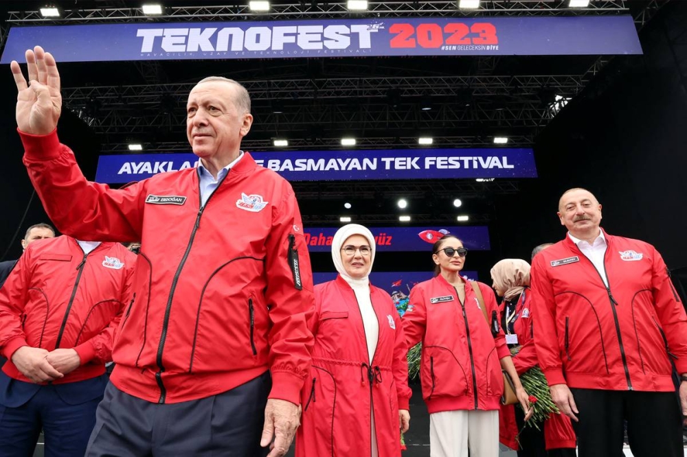 وبدأ إردوغان زيارة لمعرض تكنوفست للطيران في مطار أتاتورك السابق بإسطنبول، وهو معرض تقدمه تركيا على أنه «الأكبر في العالم»، والذي يسمح للصناعة العسكرية التركية بعرض مسيّراتها وطائراتها.