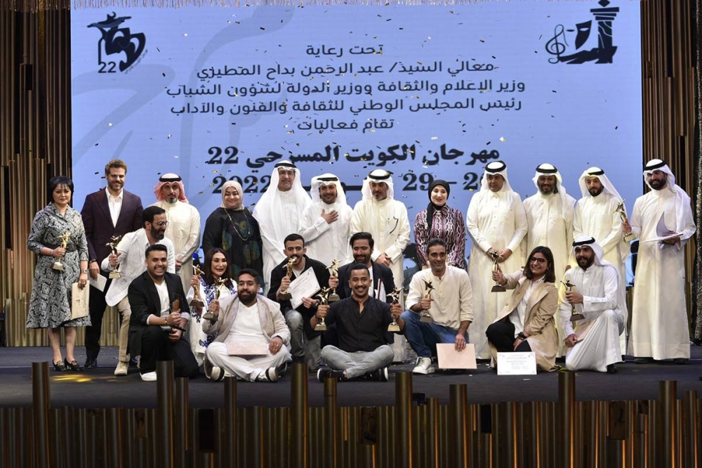 وكانت 6 فرق مسرحية تنافست على جوائز الدورة الـ 22 للمهرجان، الذي أقامه المجلس الوطني للثقافة والفنون والآداب، وانطلق بحضور ورعاية وزير الإعلام والثقافة وزير الدولة لشؤون الشباب رئيس «الوطني للثقافة» عبدالرحمن المطيري، في 20 الجاري، على مسرح الدسمة.