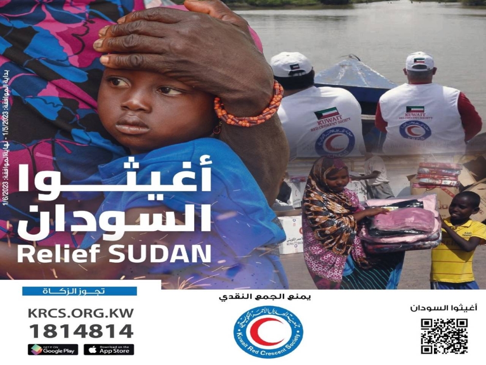 أعلنت جمعية الهلال الأحمر الكويتي تنظيمها حملة تبرعات «أغيثوا السودان» لإغاثة الشعب السوداني الذي يعاني ظروفاً إنسانية صعبة نتيجة الأوضاع التي يمر بها.