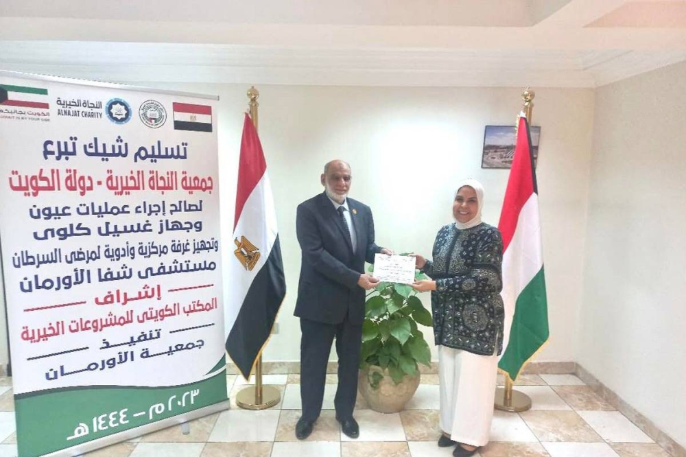 قدم المكتب الكويتي للمشروعات الخيرية بالقاهرة، اليوم، تبرعا ماليا لجمعية الأورمان الخيرية بقيمة 4.152 ملايين جنيه مصري (ما يعادل 134.570 ألف دولار) لمساعدة مرضى السرطان.