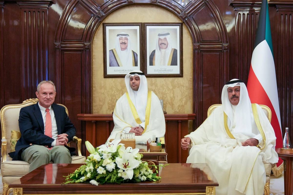 استقبل سمو الشيخ أحمد نواف الأحمد رئيس مجلس الوزراء، بحضور وزير الخارجية الشيخ سالم الصباح في قصر بيان، أمس، رئيس الجمعية العامة للأمم المتحدة للدورة الحالية تشابا كوروشي والوفد المرافق له، بمناسبة زيارته للبلاد.