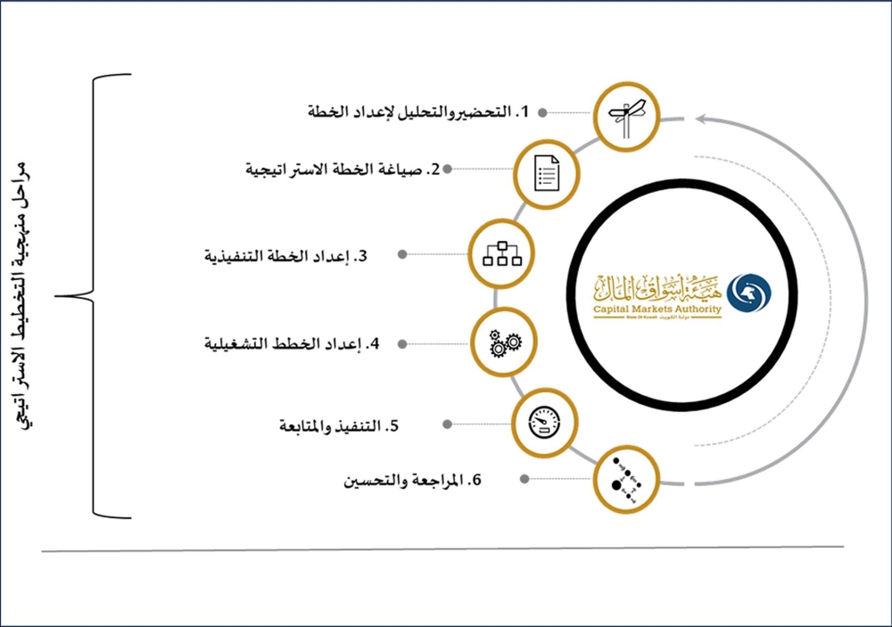 كانت الهيئة قد أطلقت أعمال إعداد استراتيجيتها الثالثة في 30 مارس 2022 بعقد ورشة عمل بحضور المدير التنفيذي وتشكيل فريق مختص بقيادة مكتب الاستراتيجيات، وبمشاركة عناصر مختلفة من قطاعات الهيئة بالتنسيق مع كل الأطراف لتنفيذ العديد من المهام والمُخرجات الرئيسية في نطاق أعمال إعداد الاستراتيجية الثالثة للهيئة، فتمّ إنجاز المرحلة الأولى من مراحل منهجية التخطيط الاستراتيجي (مرحلة التحضير والتحليل لإعداد الخطة)، وعملت الهيئة من خلال هذه المرحلة على إجراء عمليات المسح البيئي من تحليل داخلي وخارجي يمسّ مختلف أصحاب المصلحة ودراسة المؤثرات المحيطة بعمل الهيئة، ليتم بناء عليها تحديد الطموحات الاستراتيجية المرجوّة للفترة المقبلة، وفي سبيل التوصل إلى الطموحات الاستراتيجية على مستوى الهيئة وصياغتها بشكل واضح وواقعي، تضمنت عمليات مسح بيئة الأعمال استطلاع رأي أصحاب المصلحة من ذوي العلاقة بأعمال الهيئة داخلياً وخارجياً والمؤثرين في استراتيجيتها، كما تم تحديد وتصنيف تلك الجهات إلى 4 فئات رئيسية، تضمّ 41 جهة دولية ومحلية، وذلك بغرض تحديد الممارسات والمعايير المطلوبة لاستيفاء أدوار الهيئة على المستويين الدولي والمحلي، وتحقيق تطلعات واحتياجات المتعاملين، حيث قامت الهيئة بالتواصل مع جميع أصحاب المصلحة من ذوي العلاقة، وذلك للوقوف على احتياجاتهم التي يرون أهميتها، والتي تتطلب مساهمة هيئة أسواق المال وأكاديمية أسواق المال من 2023 وحتى 2027، مع طلب أي ملاحظات أو مقترحات أخرى لإضافتها في سياق استراتيجية الهيئة المقبلة في الفترة المذكورة، وذلك عن طريق نشر استطلاع عام للرأي في الموقع الإلكتروني للهيئة في 29 مايو 2022، مع إشعار كل المسجلين في بوابة الهيئة الإلكترونية والشركات المدرجة في السوق الأول وشركات الوساطة، وتم الإعلان عن الاستطلاع في الصفحة الرئيسية للهيئة وحساباتها لدى وسائل التواصل، مع التنسيق مع مختلف الجهات ذات العلاقة بأعمال الهيئة، والتي من أهمها وزارة التجارة والصناعة وبنك الكويت المركزي وشركة بورصة الكويت للأوراق المالية، والشركة الكويتية للمقاصة، علاوة على التواصل مع جهات حكومية أخرى لهذا الغرض، مثل الهيئة العامة لمكافحة الفساد، ووحدة التحريات المالية الكويتية، وهيئة تشجيع الاستثمار المباشر، ووحدة تنظيم التأمين، إضافة إلى الجهات المحلية، مثل اتحاد شركات الاستثمار والجمعية الاقتصادية الكويتية وجمعية المحللين الماليين وجامعة الكويت وغرفة تجارة وصناعة الكويت لاستطلاع مرئياتهم بهذا الخصوص، ثم تلقّي ردود مختلف الجهات ذات العلاقة للوقوف على تطلّعاتهم ومرئياتهم واحتياجاتهم ومجالات التعاون للفترة المقبلة، ودور الهيئة في تحقيق تلك التطلعات.