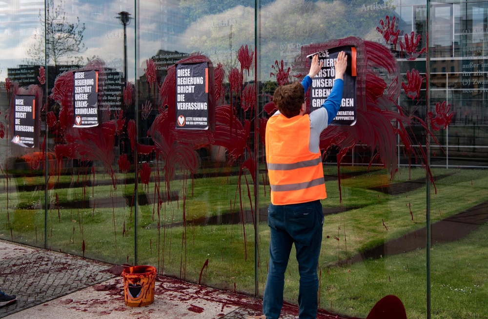 قام أنصار لمجموعة «الجيل الأخير» المعنية بحماية المناخ مجدداً بتلطيخ النصب التذكاري للدستور «القانون الأساسي» في العاصمة الألمانية برلين صباح اليوم الأحد.