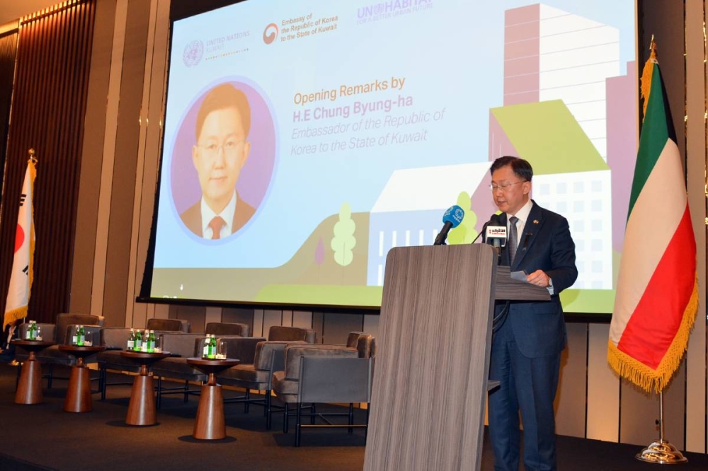 جاء ذلك في كلمة للسفير الكوري بمؤتمر «المدن الذكية» الذي عقد اليوم الاثنين بالتزامن مع اليوم العالمي للمدن الذي يصادف 31 أكتوبر بالتعاون مع المنسق المقيم لمكتب الأمم المتحدة لدى الكويت تحت شعار «حل ذكي لمشاكل المدن».
