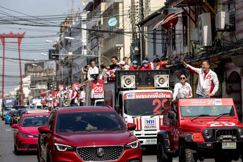 جاب قادة المعارضة في تايلاند، وأبرزهم بايتونغتارن شيناوترا (36 عاماً) ابنة رئيس الوزراء السابق، ثاكسين شيناوترا، شوارع بانكوك، اليوم ، لدعوة نحو 52 مليون ناخب للتصويت في انتخابات تشريعية هي الأولى منذ الاحتجاجات المؤيدة للديموقراطية في 2020 والتي دعت إلى إصلاح النظام الملكي، وهو موضوع محظور، حيث يحاط الملك ماها فاجيرالونجكورن بقدسية. وأظهرت الاستطلاعات أن رئيس الوزراء المنتهية ولايته برايوت تشان أو تشا، وهو جنرال سابق انقلابي يتولى الحكم منذ 2014، سيخسر في اقتراع اليوم أمام معسكر الإصلاح الذي يجسّده حزب فيو تاي وحركة إلى الأمام.