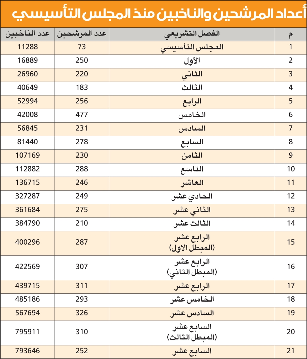 • 47 عضواً في مجلس 2022 سجلوا ترشيحهم بعد عزوف أبل والعجمي ويوسف البذالي