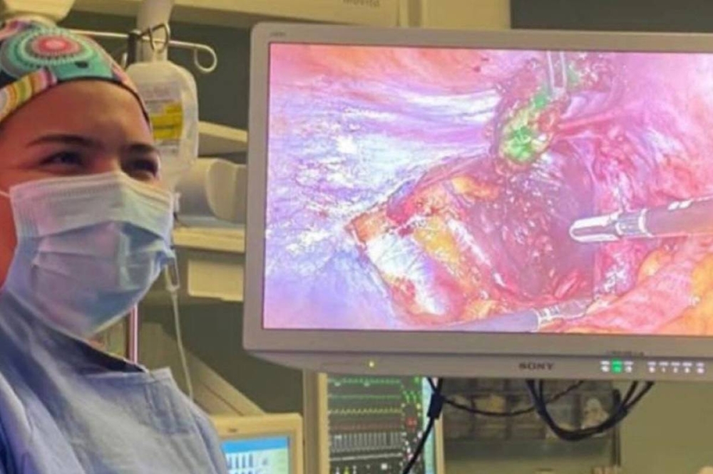 وقالت المتخصصة في جراحة الأورام النسائية د. نورة الإبراهيم إنه قد تم استخدام تقنية تتبع واستئصال الغدد اللمفاوية الخافرة باستخدام صبغة الاندوسيانين الفلوروسية الخضراء والجاما كاميرا خلال عملية استئصال الرحم بالمنظار، ومن ثم فحصها مجهريا لتحديد مدى انتشار الخلايا السرطانية بدقة، إذ ساعد ذلك في وضع خطة علاج مناسبة بنسبة نجاح أكبر، وآثار جانبية أقل، حيث تكللت العملية بالنجاح، وخرجت المريضة بصحة جيدة في اليوم التالي للعملية.