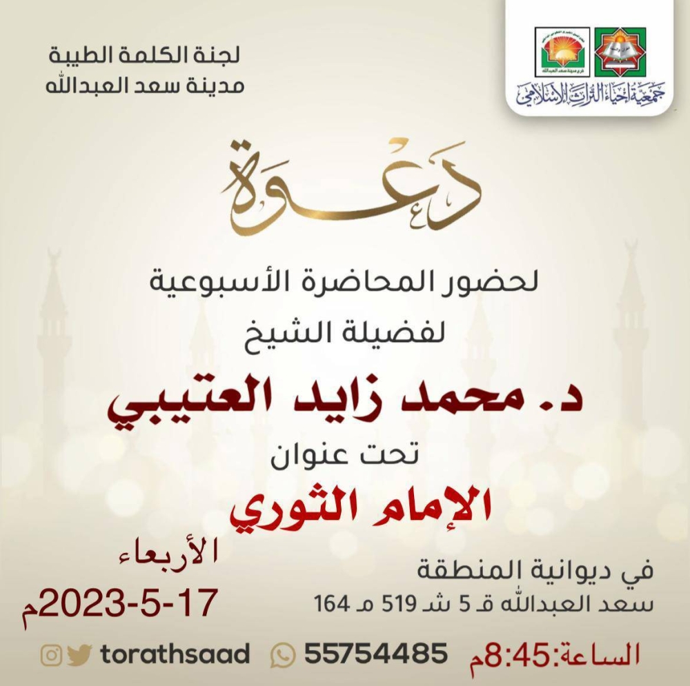 تقيم جمعية إحياء التراث الإسلامي، أنشطة وفعاليات ثقافية وعلمية في مختلف العلوم الشرعية، حرصاً على نشر العلم الشرعي، واستغلالاً لوقت العطلة الصيفية بما يعود على الشباب وطلبة العلم بما ينفع.