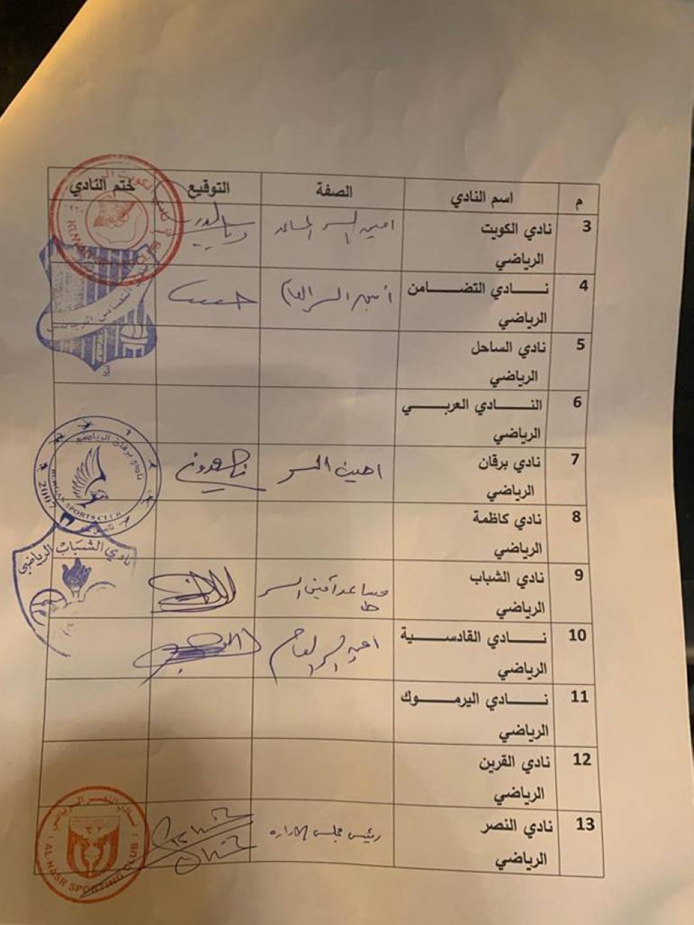 وكان اللافت في الدعوة الجديدة الموجهة من الاندية لانعقاد الجمعية العمومية هو دخول نادي القادسية.