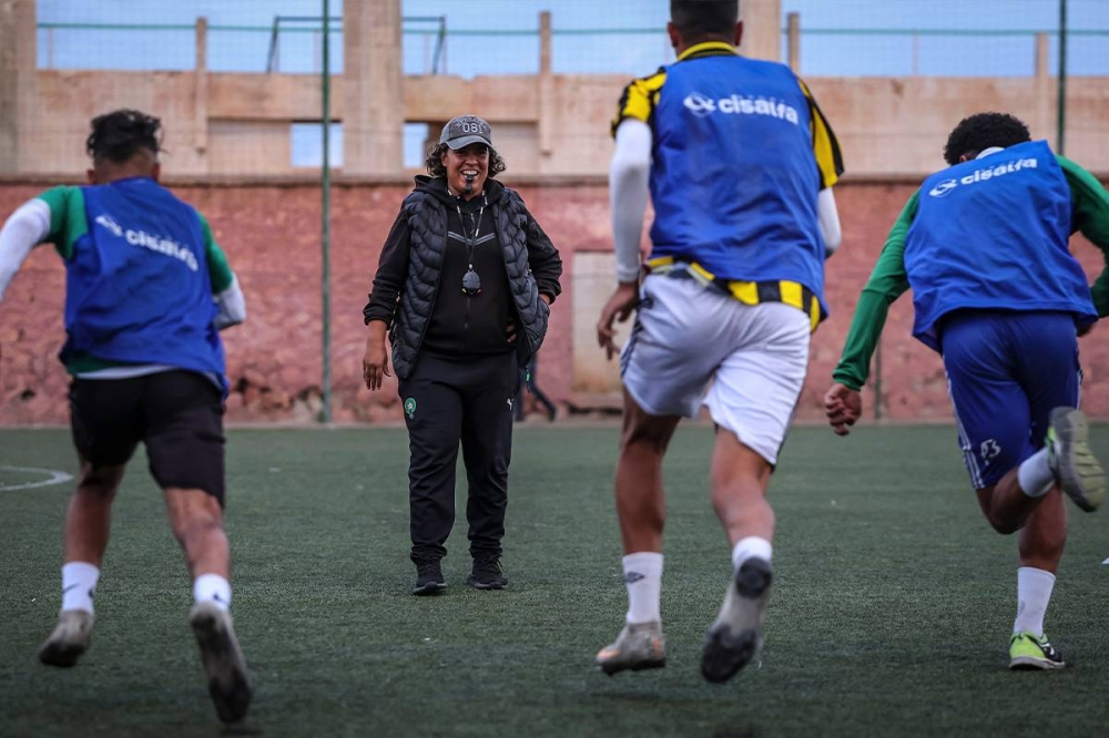 وتقول لوكالة فرانس برس بعد نهاية التمرين «إنه شرف لي أن أكون أوّل مدرّبة لفريق للرجال في المغرب، إنه أيضاً فخر بالنسبة لي ولوالدَي اللذين دعماني دائماً».