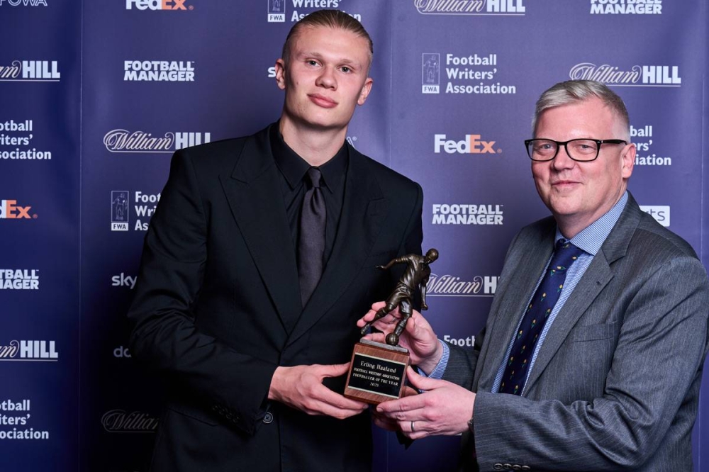 وحصد هالاند الجائزة بعدما تفوق في التصويت على دي بروين وهاري كين ومارتين أوديغارد وماركوس راشفورد وبوكايو ساكا وكيران تريبييه.