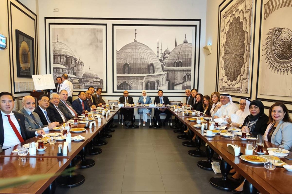 كجزء من «أسبوع المطبخ التركي» في نسخته الثانية، الذي يقام سنوياً من 21 إلى 27 مايو، استضافت السفيرة التركية لدى البلاد طوبى نور سونمز، 14 من نظرائها السفراء في أحد المطاعم التركية بالكويت.
