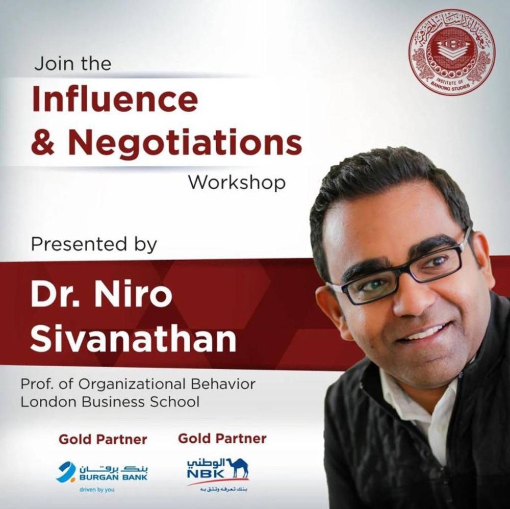 وفي ندوة بعنوان «مهارات التفاوض والتأثير على الآخرين» للمحاضر الدكتور نيرو سيفاناثان، البروفيسور في السلوك التنظيمي لدى كلية لندن للأعمال، تمت مناقشة مهارات التفاوض على الصفقات الكبرى والتأثير على الأفراد وكيفية اتخاذ القرارات السليمة للقادة، من خلال ورشة عمل خاصة تضمنت أمثلة حقيقية تساعد القادة على اتخاذ القرارات المناسبة تحقق قيمة مضافة لأنفسهم ومؤسساتهم.