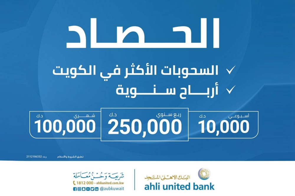 أعلن البنك الأهلي المتحد نتيجة السحب الشهري من برنامج جوائز الحصاد الإسلامي، والذي أقيم أمس، وحصل على الجائزة وقيمتها 100 ألف دينار العميل جايانجانيا ريدي شابيدي سوبارريدي. بهذه المناسبة، قدم رئيس التسويق وتطوير المنتجات في إدارة الخدمات المصرفية للأفراد بالبنك الأهلي المتحد أمريش ناندكيول يار التهنئة للفائز متمنيا له دوام التوفيق، وأعرب عن أمله أن يحالف التوفيق جميع عملاء البنك في السحوبات القادمة، وسعادته البالغة بالثقة الغالية التي يضعها العملاء في البنك. وأكد ناندكيول يار أن البنك الأهلي المتحد حرص منذ إطلاق برنامج جوائز الحصاد الإسلامي على تقديم باقة حصرية من الجوائز، بما يسهم في تحقيق تطلعات عملائه، ويعمل على تعزيز ثقافة الادخار، مشددا على التزام البنك بتوفير الحلول المصرفية الحديثة، والتي تنسجم مع متطلبات العملاء المختلفة. ويقدم حساب الحصاد الإسلامي في باقته الجديدة مجموعة أوسع من المزايا، حيث يحظى الرابحون من عملاء المتحد بجائزة شهرية بقيمة 100000 د.ك، إضافة إلى 10 جوائز أسبوعية بقيمة 1000 دينار لكل جائزة، وتبقى الجوائز ربع السنوية الكبرى بقيمة 250000 د.ك نقدا للرابح هي أهم ما يطمح إليه العملاء، حيث تمثل لهم فرصة حقيقية لتحقيق حلم العمر. وفضلا عن هذه الباقة من الجوائز الجذابة، هناك أيضا أرباح سنوية متوقعة على أساس عقد الوكالة، ما يزيد من جاذبية حساب الحصاد الإسلامي.