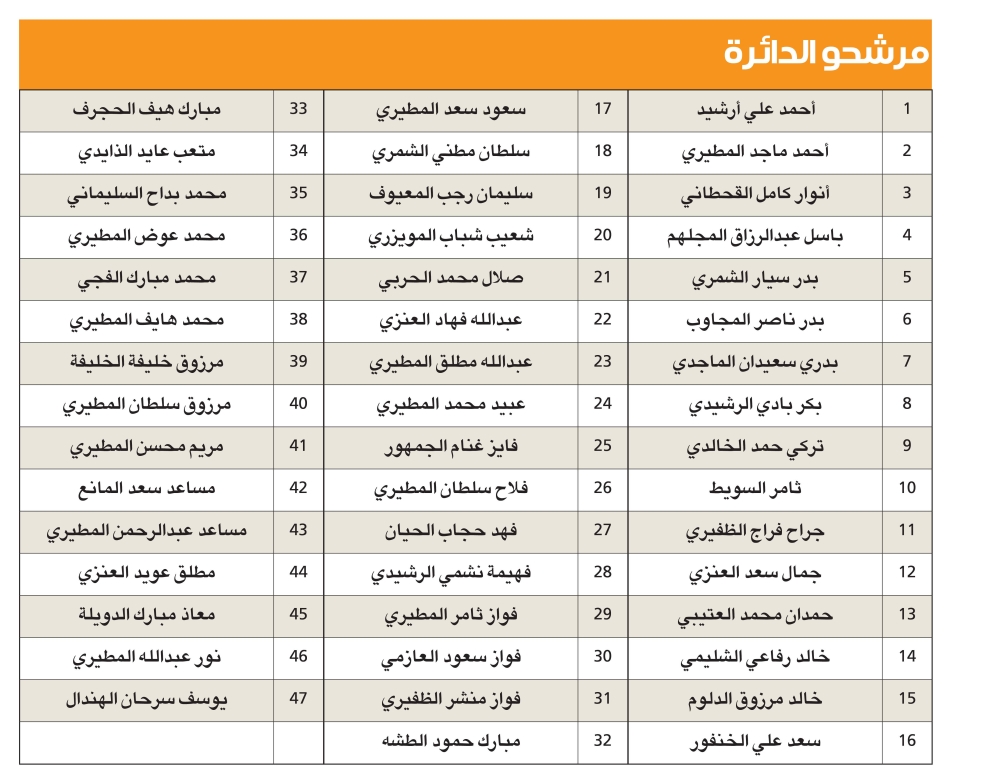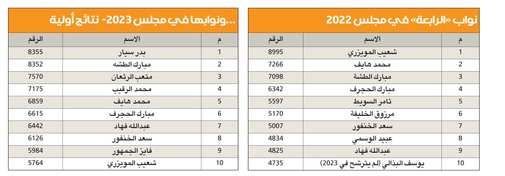 • تغيير في 4 مقاعد بخسارة السويط والخليفة والوسمي وعدم ترشح البذالي