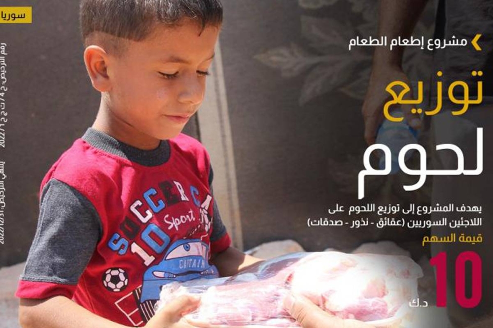 وقالت الجمعية، في بيان، اليوم، إن المشروع يستهدف تقديم لحوم الذبائح للأسر الفقيرة في تلك المخيمات، سواء كانت عقائق أو نذورا أو صدقات، موضحة أن قيمة السهم الواحد تبلغ 10 دنانير، أما قيمة الخروف في الداخل السوري فتبلغ 60 دينارا، وفي الأردن ولبنان 80 دينارا.