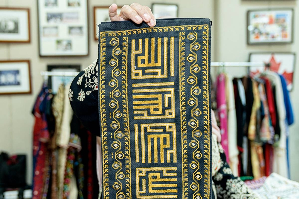 ويشتمل المعرض أيضاً على المنسوجات الفلسطينية التقليدية وبعض الحرف اليدوية.