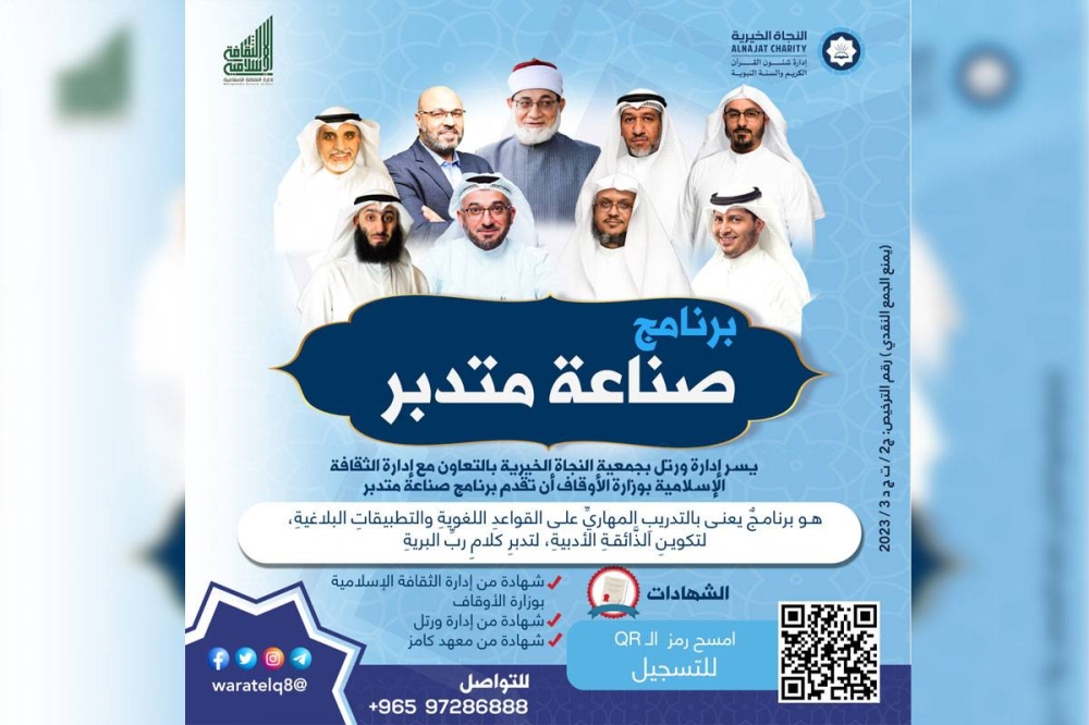 قال المشرف العام للحلقات بإدارة شؤون القرآن الكريم والسنة النبوية، التابعة لجمعية النجاة الخيرية «ورتل»، الشيخ جزاع الصويلح «إننا نقدم حاليا برنامج «صناعة متدبر»، بالتعاون مع الثقافة الإسلامية بوزارة الأوقاف، ومعهد كامز للتدريب الأهلي».