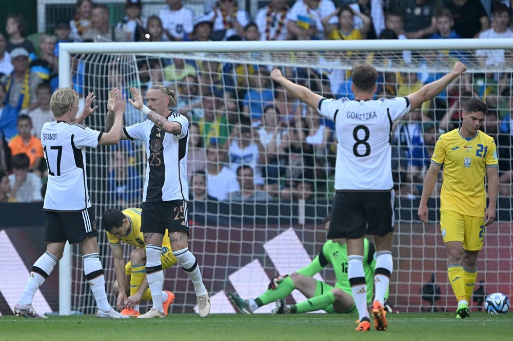 وكانت ألمانيا البادئة بالتسجيل عبر مهاجم فيردر بريمن نيكلاس فولكروغ (6)، وردت أوكرانيا بثلاثية تناوب على تسجيلها فيكتور تسيغانكوك (19 و56) وأنتونيو روديغر (23 خطأ في مرمى منتخب بلاده)، قبل أن تنجح ألمانيا في إدراك التعادل بهدفي البديل كاي هافيترس (83) والقائد يوزوا كيميتش (90+1).