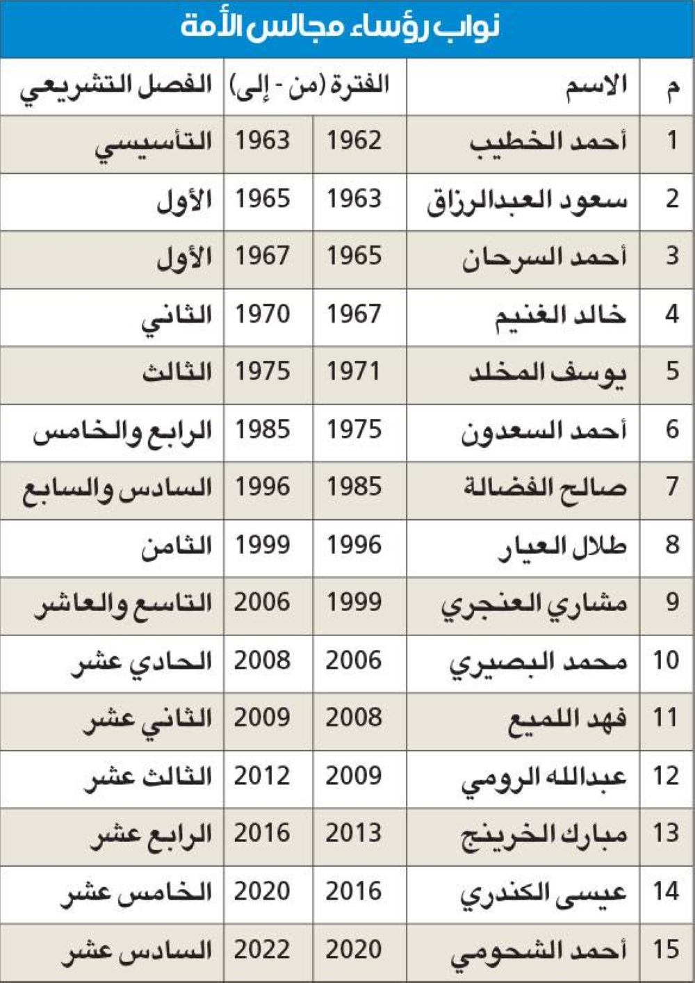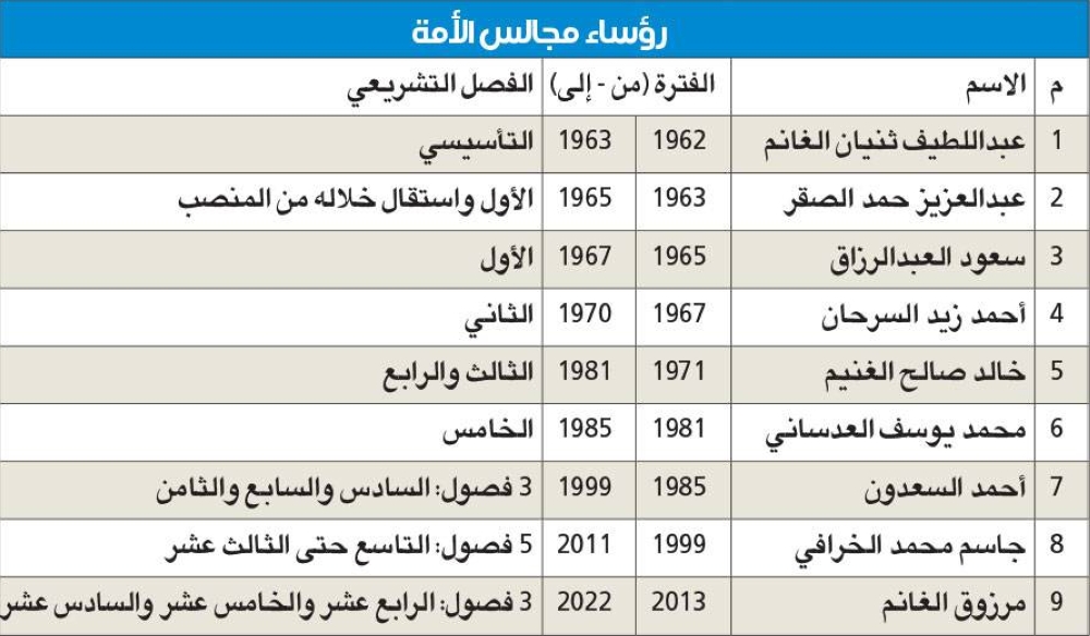 • الخرافي أكثر من تبوأ منصب الرئيس في 5 فصول تشريعية