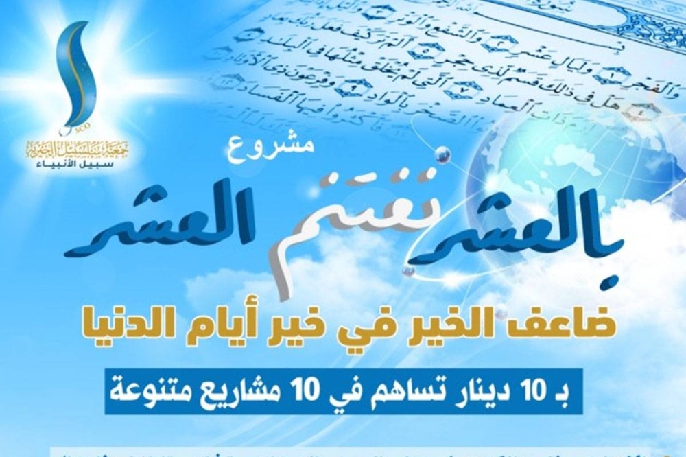 أطلقت جمعية سلسبيل الخيرية، حملة «بالعشر نغتنم العشر» لإعانة المحتاجين، وإتاحة الفرصة أمام المحسنين في اغتنام أيام العشر من ذي الحجة.