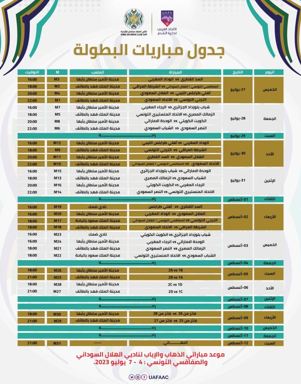 تقام من 27 يوليو حتى 12 أغسطس في السعودية