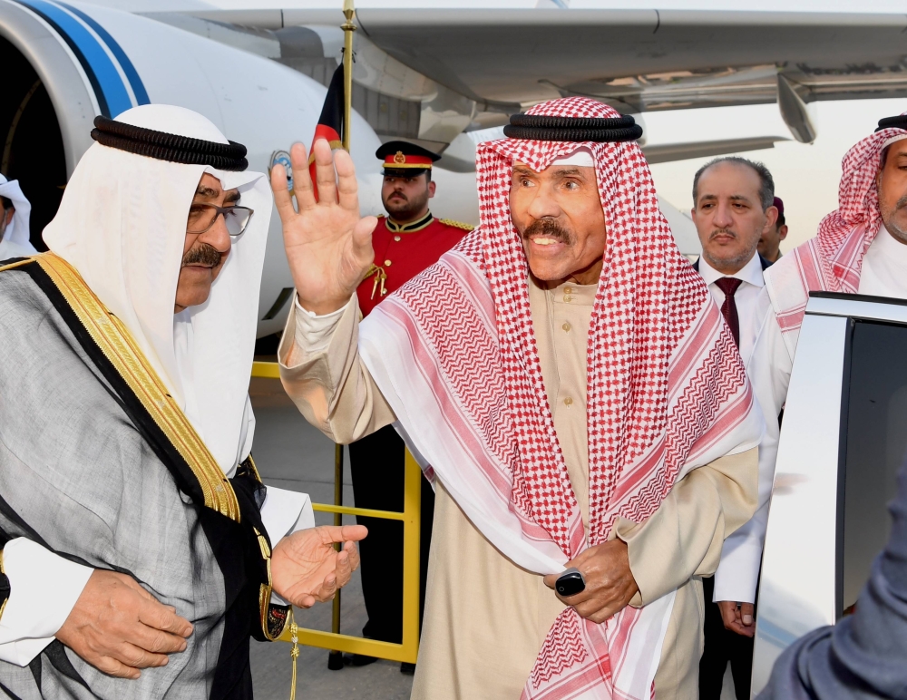 عاد صاحب السمو أمير البلاد الشيخ نواف الأحمد، إلى أرض الوطن، عصر اليوم، قادماً من الجمهورية الإيطالية الصديقة، بعد زيارة خاصة.