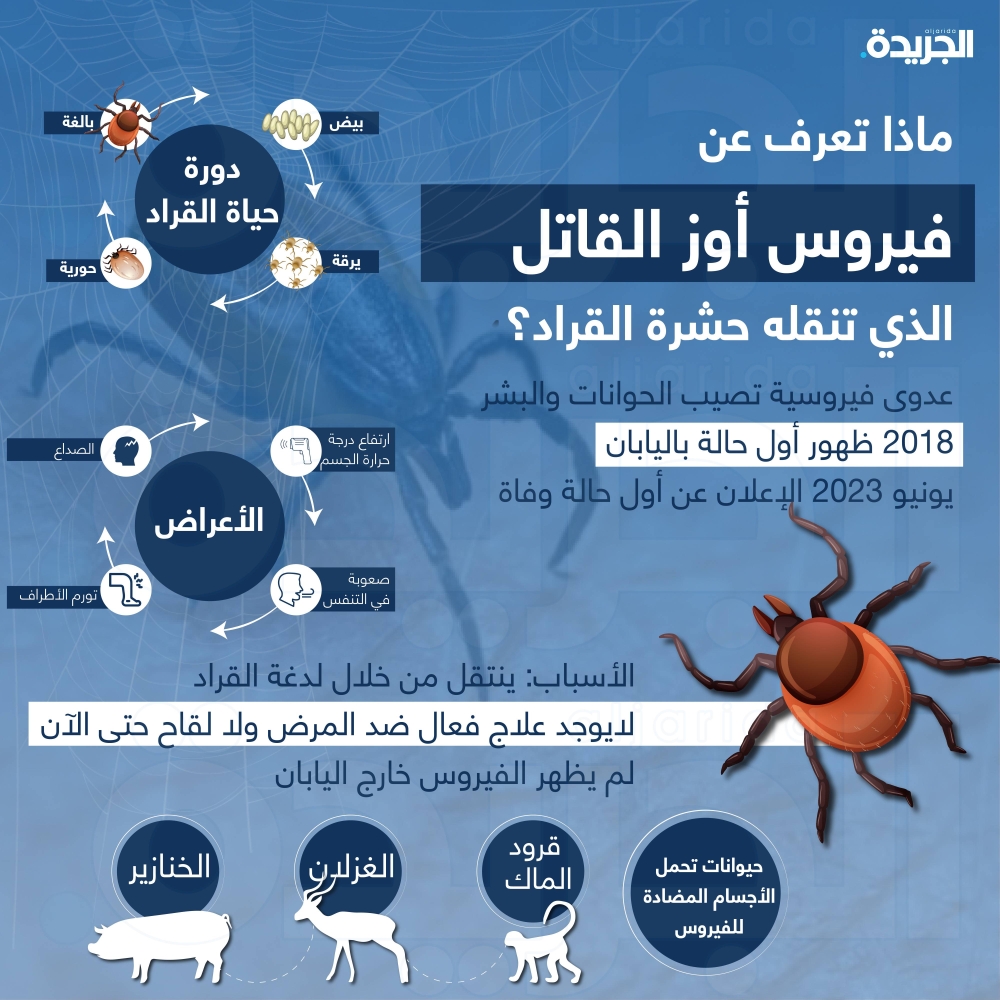 «أوز» نوع نادر من الفيروسات التي يمكن أن تنتقل من الحيوانات إلى الإنسان، وينقله القراد الذي يعيش في الحياة البرية، وتم اكتشاف الفيروس لأول مرة في اليابان في عام 2018.