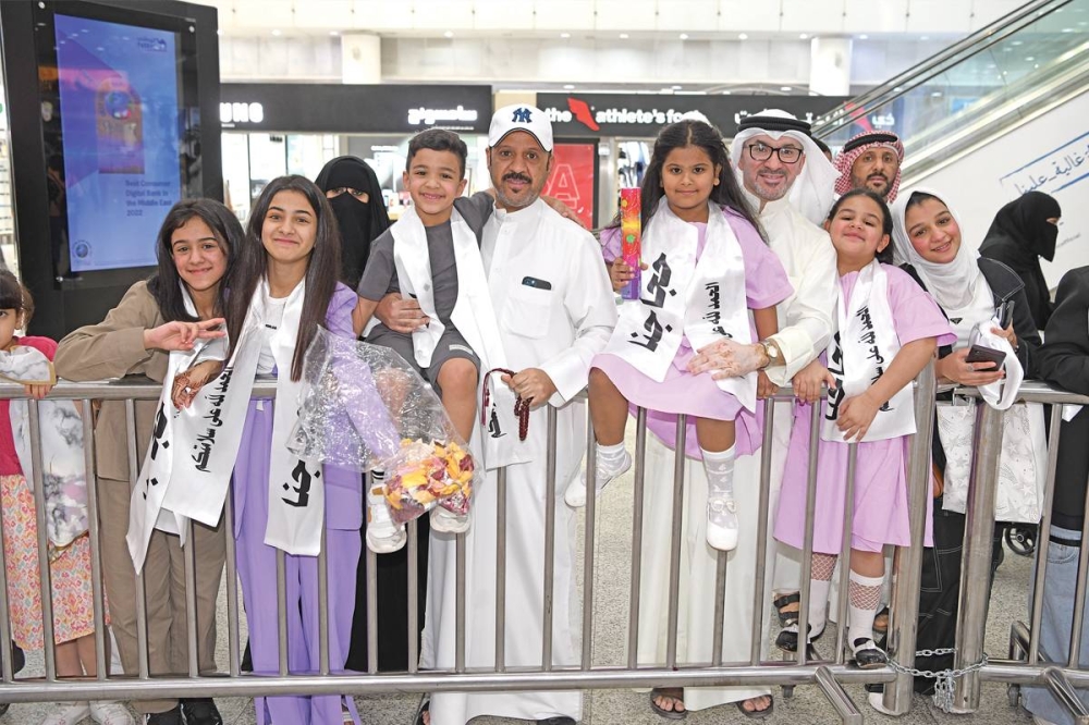 وامتلأ المطار بالكبار والصغار وحمل الجميع الورد في انتظار رحلة الخطوط الجوية الكويتية رقم 788 القادمة من الرياض، والتي وصلت الساعة 2.45 ظهرا، ومع خروج القادمين من وجهات أخرى ترقب الحضور خروج أول الحجاج، في حين أعلن المطار وصول الرحلة الى أرض الوطن.