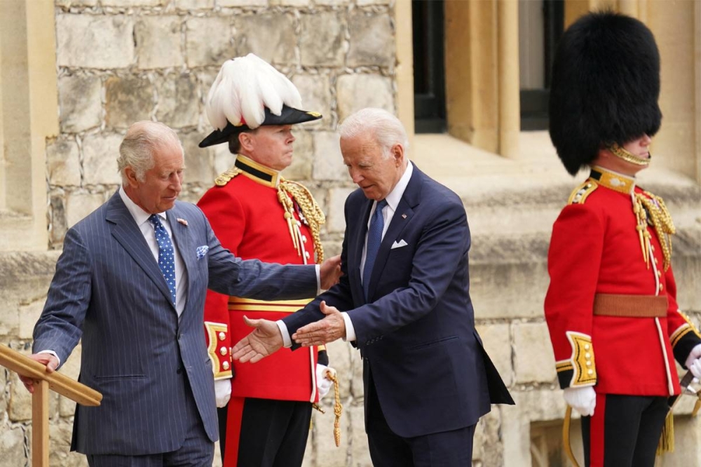 وخلال زيارته الخاطفة للندن قبل قمة الناتو، انضم بايدن لملك بريطانيا تشارلز الثالث لتناول الشاي وإجراء محادثات حول أزمة المناخ في قلعة وندسور.